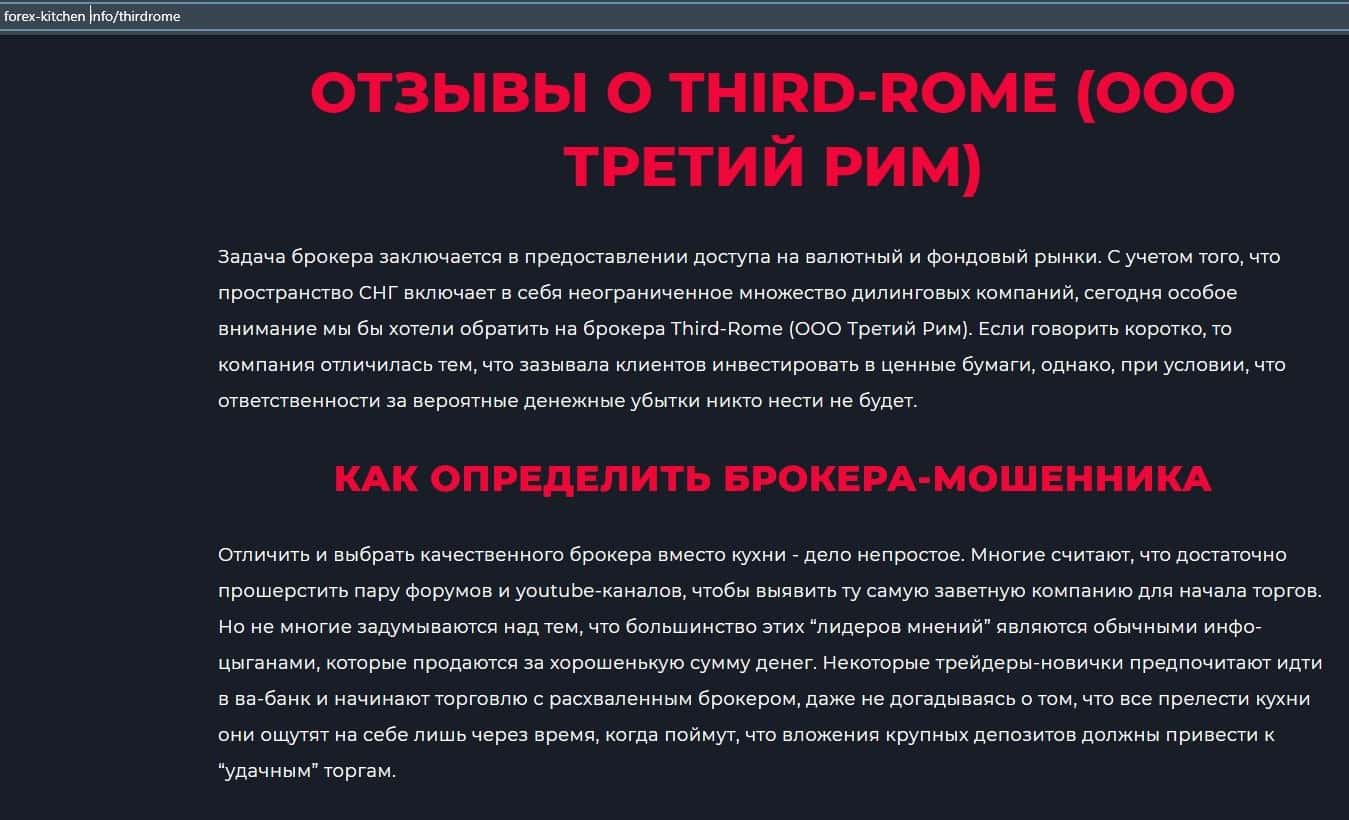 - Статьи и обзоры о мошеннической конторе Third-Rome