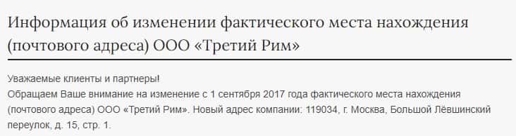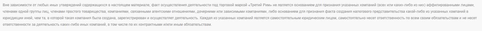 Исходя из официальных данных с сайта инвестиционной конторы ООО Третий Рим, они разместили свой главный офис на Виргинских островах, которые являются оффшорной зоной.
