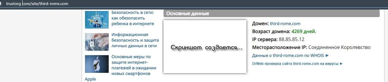 На одном из сайтов, мы решили проверить, кто же владеет сайтом third-rome com. Как оказалось они боятся показывать о себе информацию, из-за своей преступной деятельности.