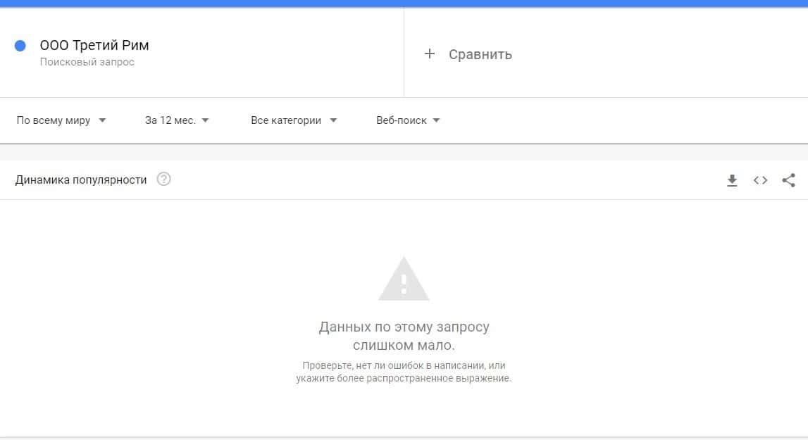 Лохотронская организация по версии бренда "ООО Третий Рим" также не набрала никакой активности согласно сервиса Гугл Трендс, поэтому они не популярны.