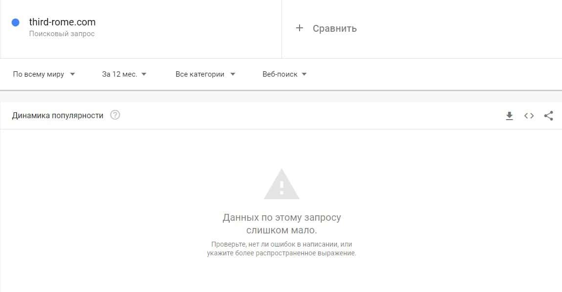 По запросам бренда псевдо-конторы "Third-Rome" не было никакой динамики и можно считать, что этот бренд в Гугл не популярен среди интернет-сообщества вообще.