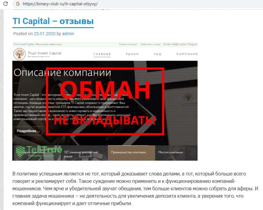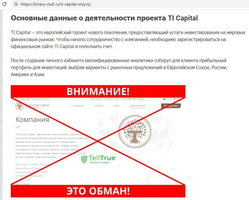 - Так называемая компания TI Capital не прошла проверку!