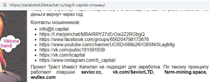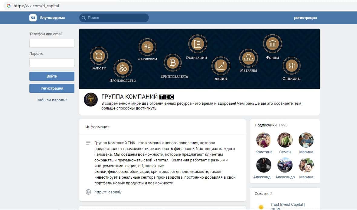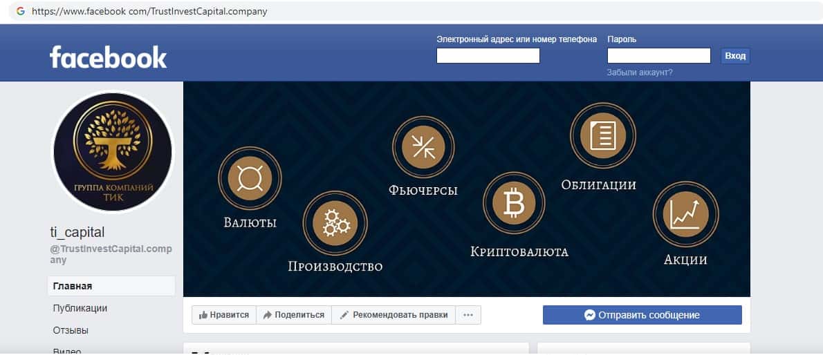 - Страницы аферистов TI Capital в различных социальных сетях