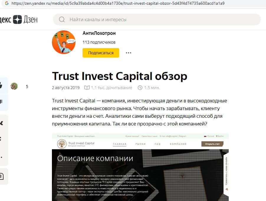 Это самый настоящий лохотрон, говорит данный пользователь написавший эту статью о Траст Инвест Капитал и приводит несколько примеров мошеннической деятельности компании TI Capital. Данные посты пишутся для того, чтобы люди имели полную информацию о мошенниках и не вкладывали в них свои средства.