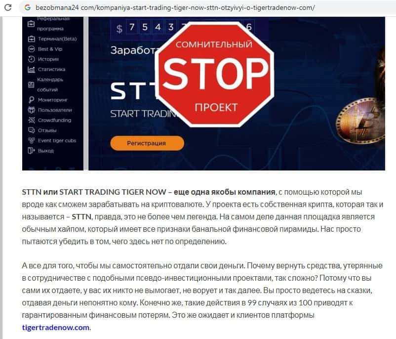 Финансовая пирамида Тигр Трейд Нов не внушает доверия у опытных пользователей. Чего только стоит легенда о собственной крипте, которая действует исключительно в рамках шараги.