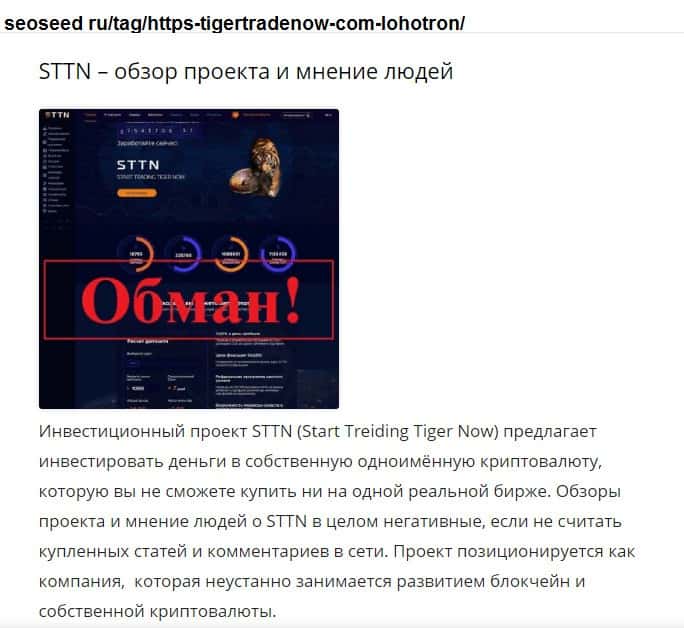 Какие лохотроны работают совместно с конторой Тигр Трейд Нов?