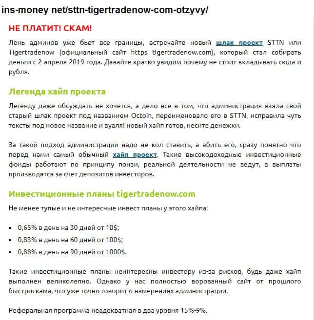 Независимые обзоры шараги Тигр Трейд Нов в сети интернет
