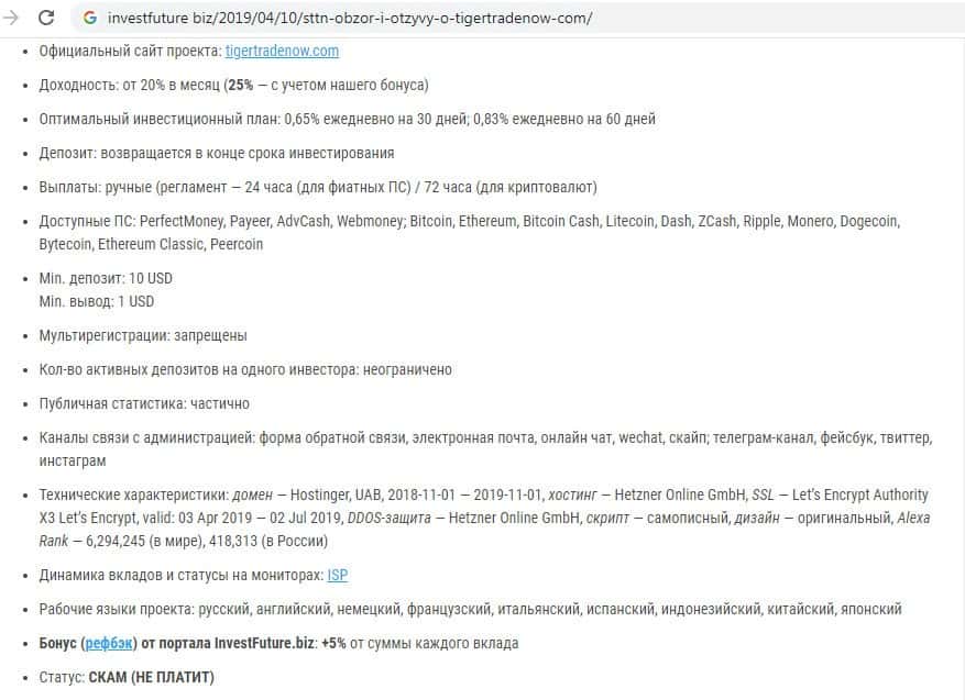 - Независимые обзоры шараги Тигр Трейд Нов в сети интернет