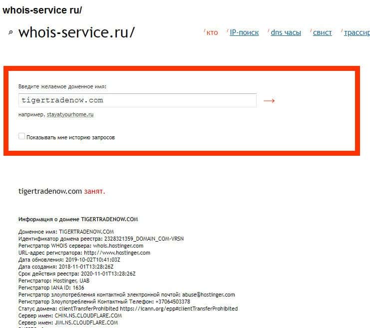 - Что известно о владельцах домена конторы Тигр Трейд Нов?