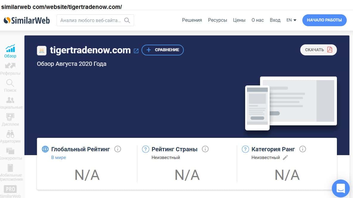 Делая запрос на сайт мошенников Тигр Трейд Нов, получили результат источников трафика - не индексируется. То есть, делаем вывод, настолько шарага популярная в сети.