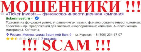 В глобальной сети интернет, по адресу orabote top, находится подробная критика работы сайта TickerInvest, с полным разбором мошеннических схем, аффер, которые проводит контора под названием "TickerInvest". Сервис уличают в том, что он активно занимается скамингом, обворовывая несчастных клиентов, которые доверились этим жуликам, кричащих о доверии.Информация о Тикер Инвест на сайте masterforex-v org