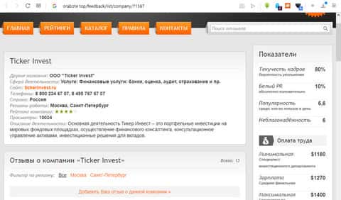 - Отклик о работе дилингового центра TickerInvest на orabote top