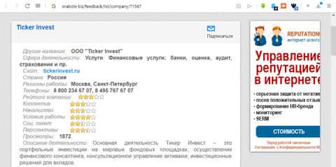 - Реальные отзывы про Тикер Инвест на reviewscompanies