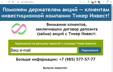 В том случае если лохотронщики из Тикер Инвест Вас обманули, то в обязательном порядке напишите про это нам. Оставьте Ваш е-майл в форме чуть ниже, с Вами свяжутся.