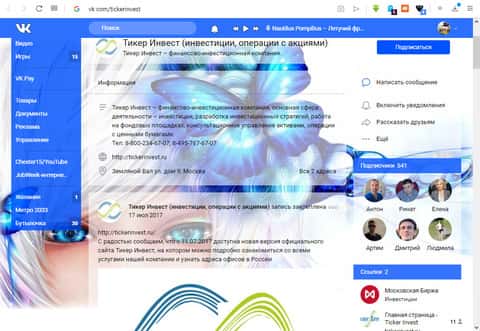 - Группа в Вконтакте с заманчивой информацией от ТикерИнвест