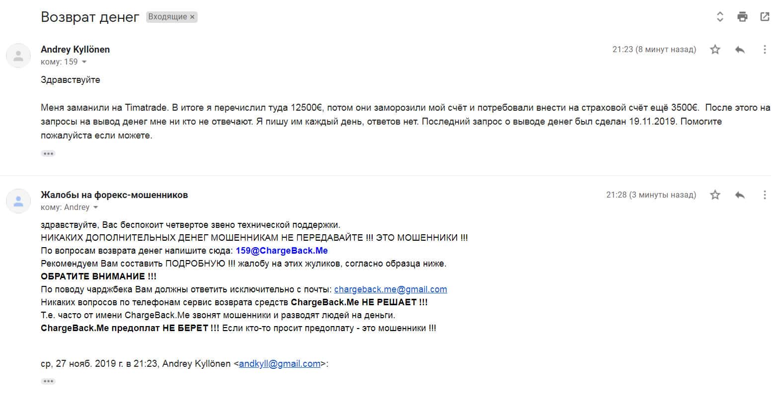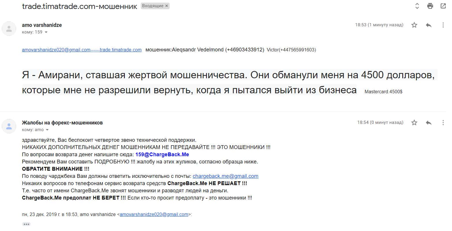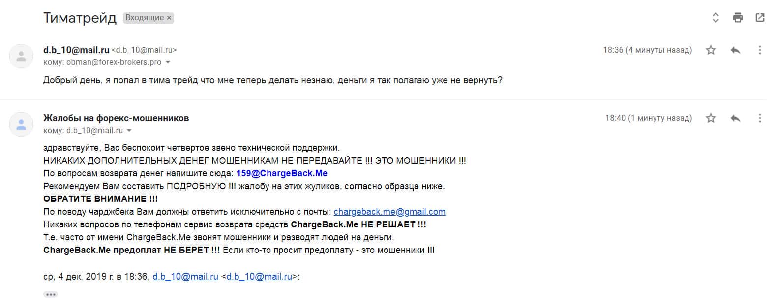 - Жалоба на аферистов ТимаТрейд от еще одного пострадавшего клиента