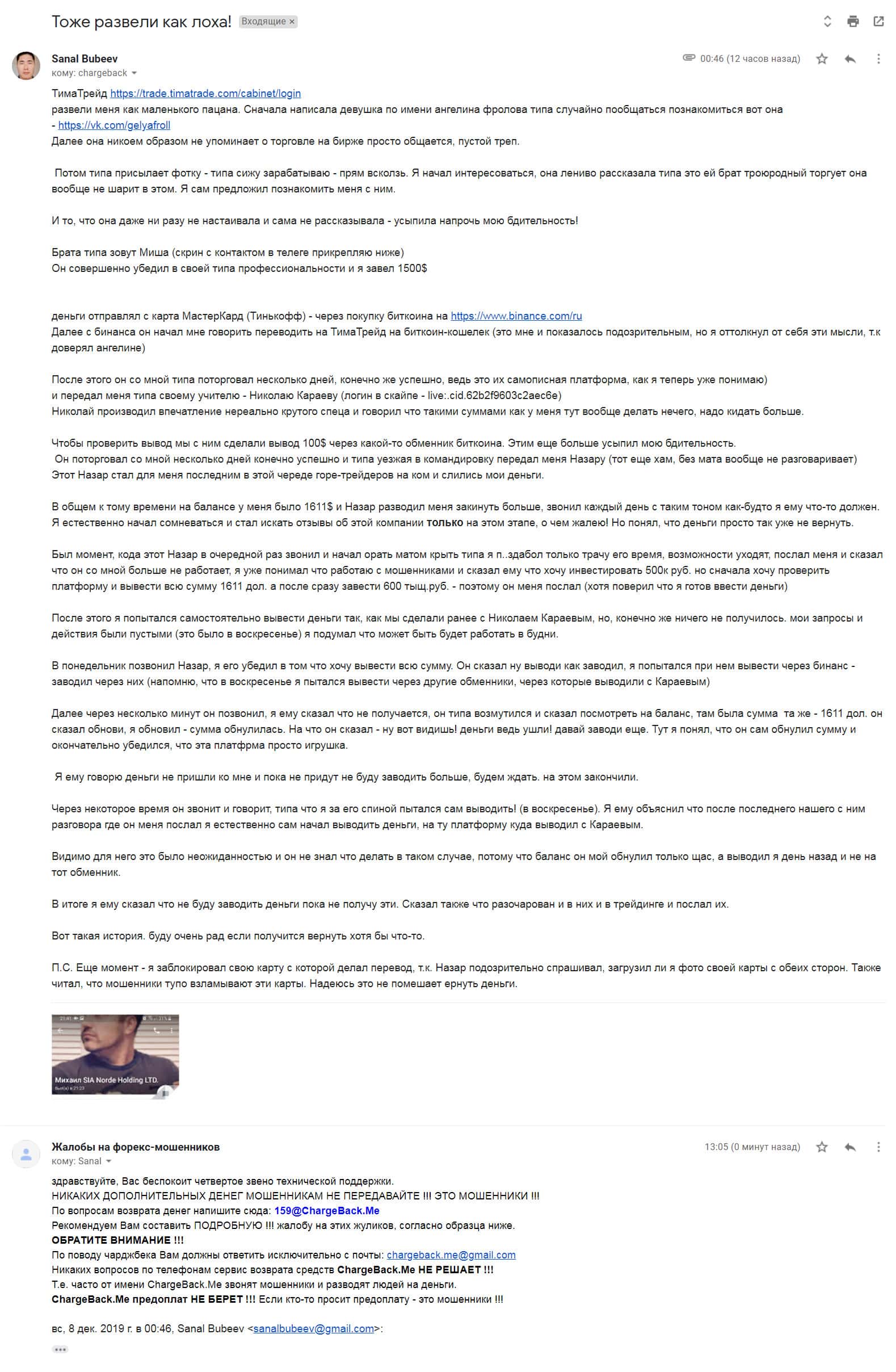 - Подробная жалоба на жуликов TimaTrade - клиент потерял 1000 американских долларов