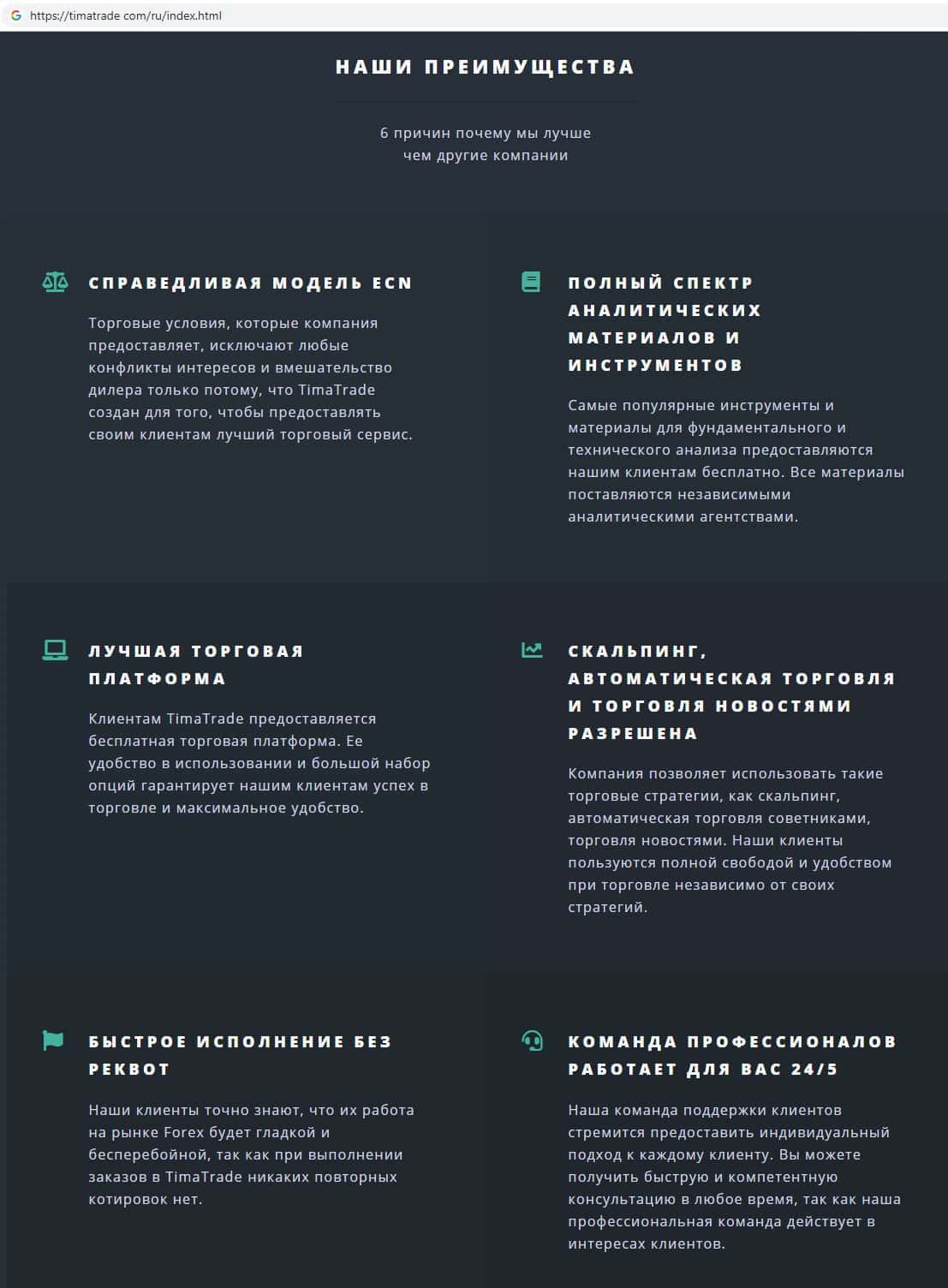 - Что считают преимуществами своей компании мошенники TimaTrade?