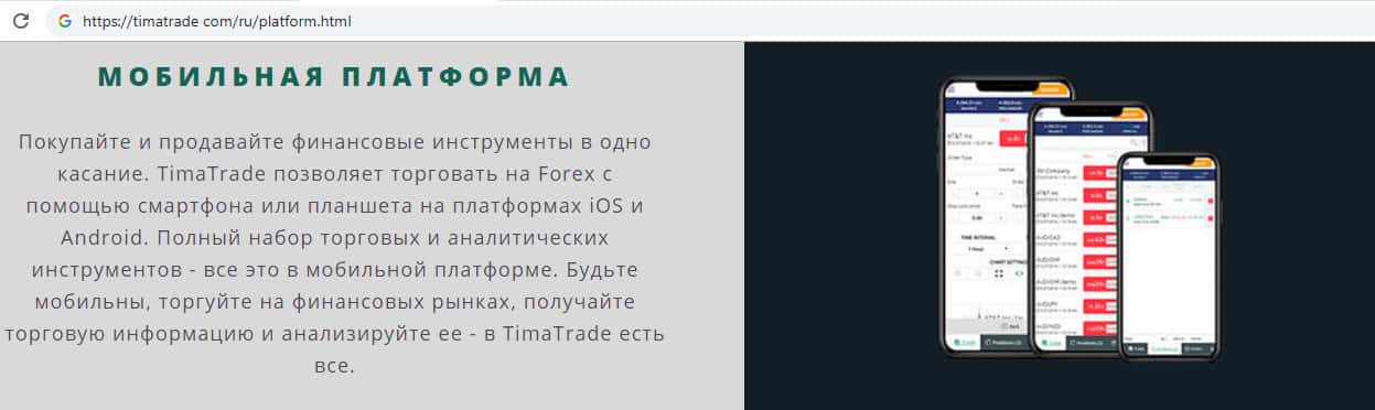 Мошенники TimaTrade предлагают пользователю начать торговать с помощью сматрфона, а именно с помощью якобы специально разработанного приложения. Ни в коем случае не начинайте торговать на их фальшивой платформе с помощью смартфона !!! Это не инновация, а всего лишь очередная ловушка для лохов.