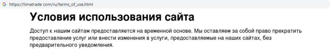 Условия пользования сайтом и торговой платформой скам-брокера Тима Трейд