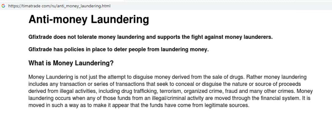 Борьба с отмыванием денежных средств конторы TimaTrade