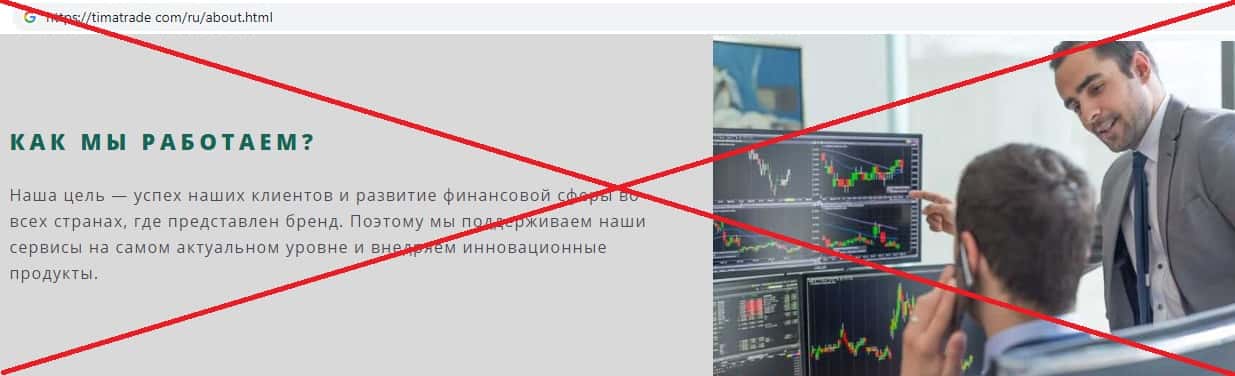 TimaTrade - очередная форекс-кухня, которая позиционирует себя как брокера международного уровня. Обещания данной конторы ничем не отличаются от обещаний подобных мошеннических организаций. Не верьте ни одному слову скам-брокера Тима Трейд !!!