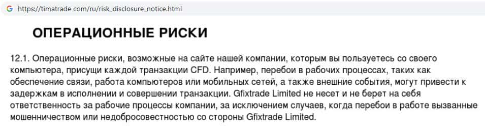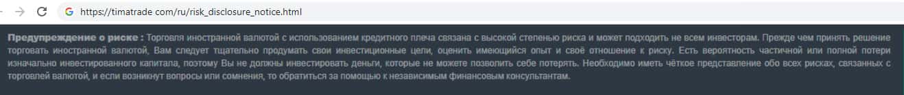Заявление о раскрытии рисков на сайте шуллеров TimaTrade