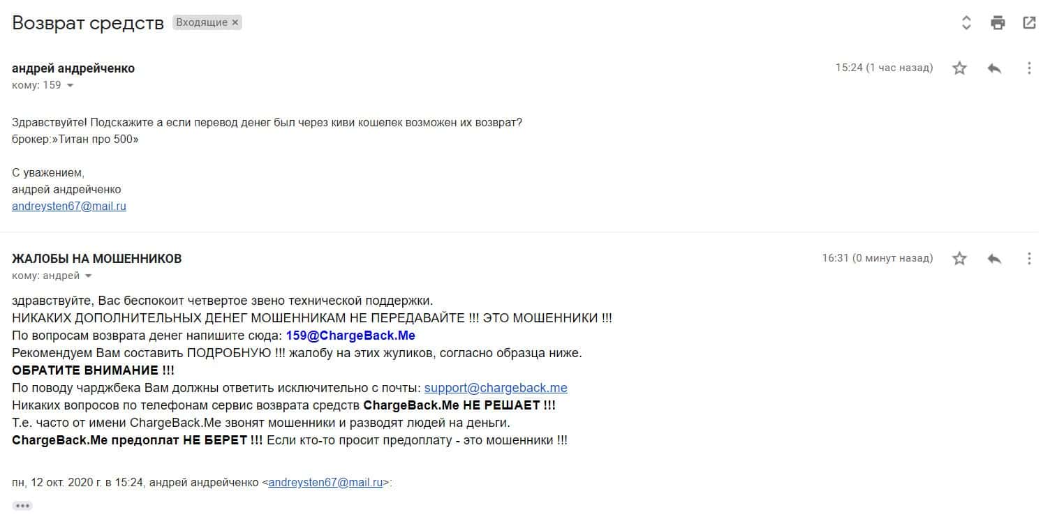 Автору данного информационного материала в виде подробной жалобы на мошенников Титан Про 500 рекомендуют обращаться в интернет-сервис ChargeBack.Me по всем вопросам, касающимся возврата утраченных вложений.