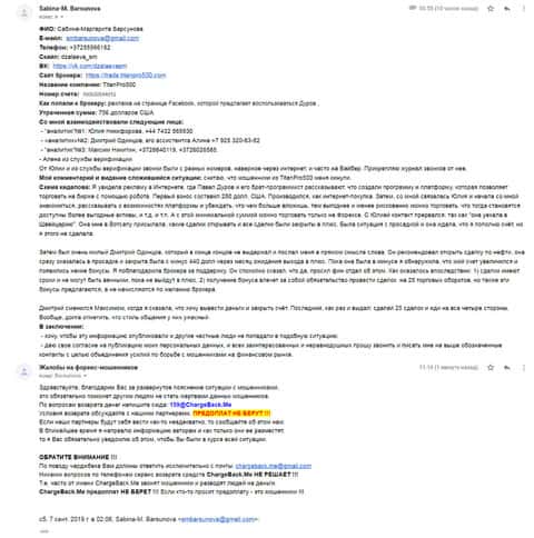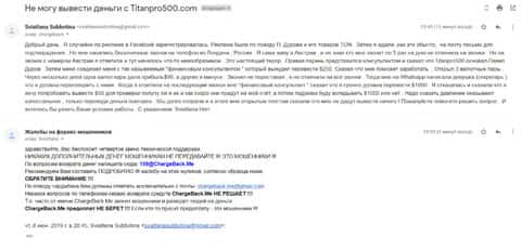 - Подробная жалоба на TitanPro 500 клиент утратил 250 долларов