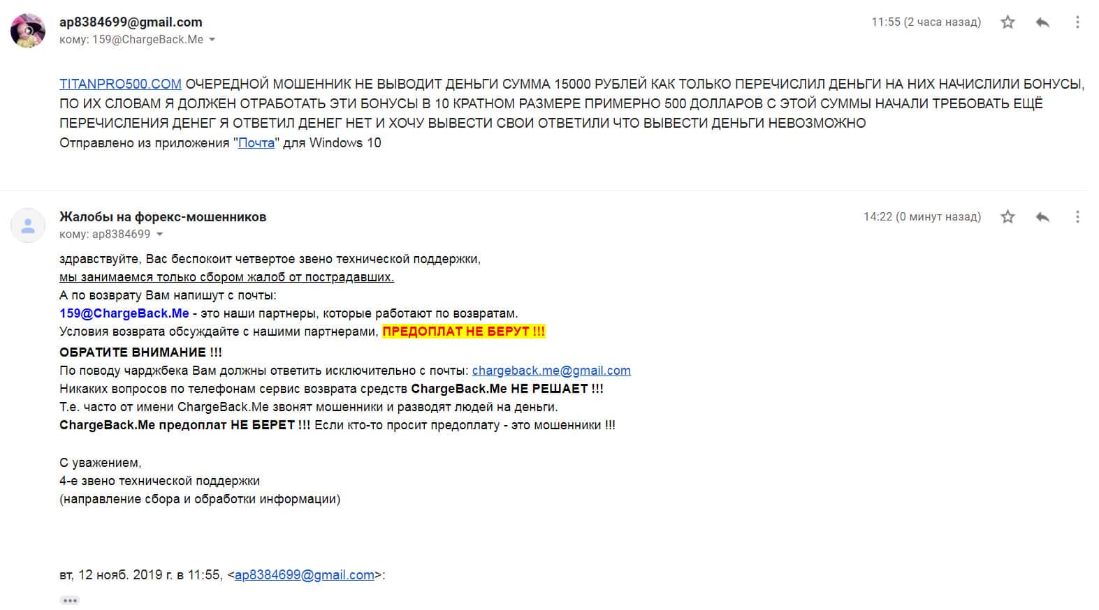 - Жалоба на компанию Титан Про 500 от клиента, которого кинули на несколько сотен $