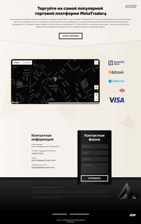 Во второй части сайта мы узнаем, что кухня Титан Про 500 использует торговую платформу MetaTrader4, которая популярна среди многих форекс-мошенников из-за легкости использования в ней кухонных методов слива депозита клиентов. Так что опасайтесь этого, при выборе брокера.