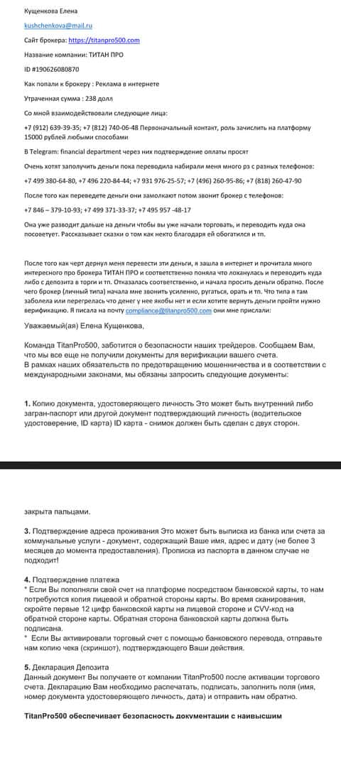 - Жалоба на аферистов Титан Про 500 - клиент утратил 4500 $