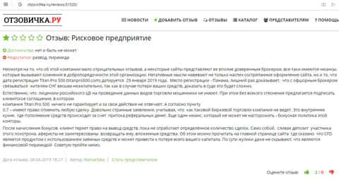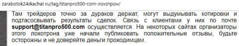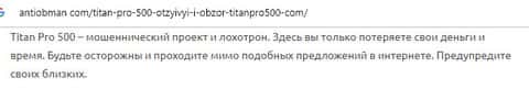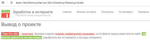 Еще один сайт-отзовик остерегает людей от работы с форекс-кухней Титан Про 500