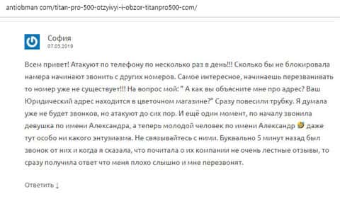 - Аферисты Титан Про 500 атакуют своих клиентов звонками
