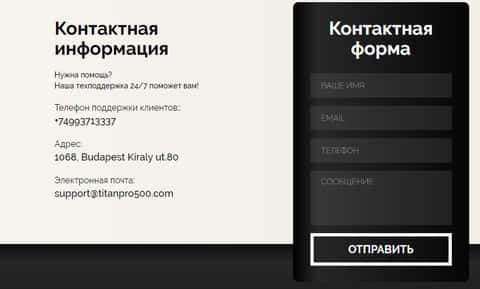 Контакты, которыми пользуются жулики конторы Titan Pro 500