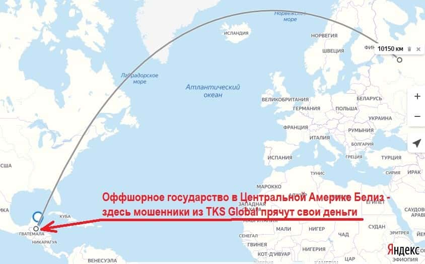 Один из оффшоров, где мошенники из TKS Global прячут наворованные деньги, находится в государстве Белиз в Центральной Америке, на расстоянии более 10 тыс. км от России.