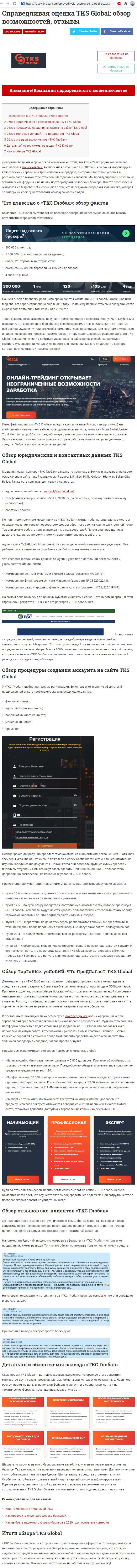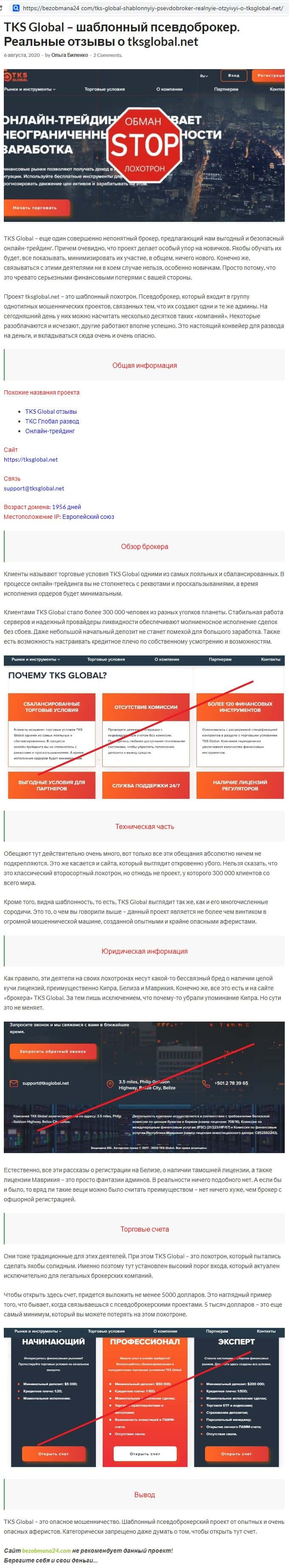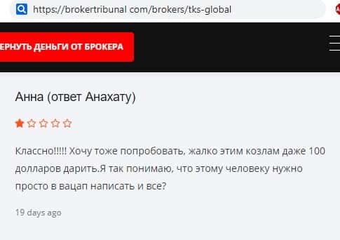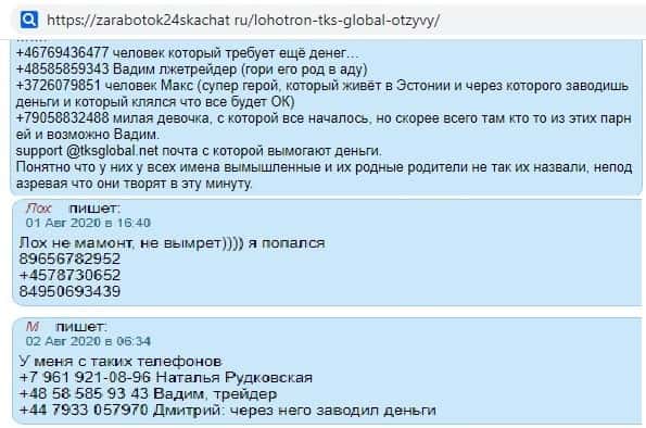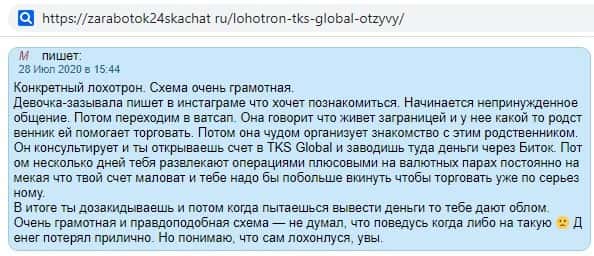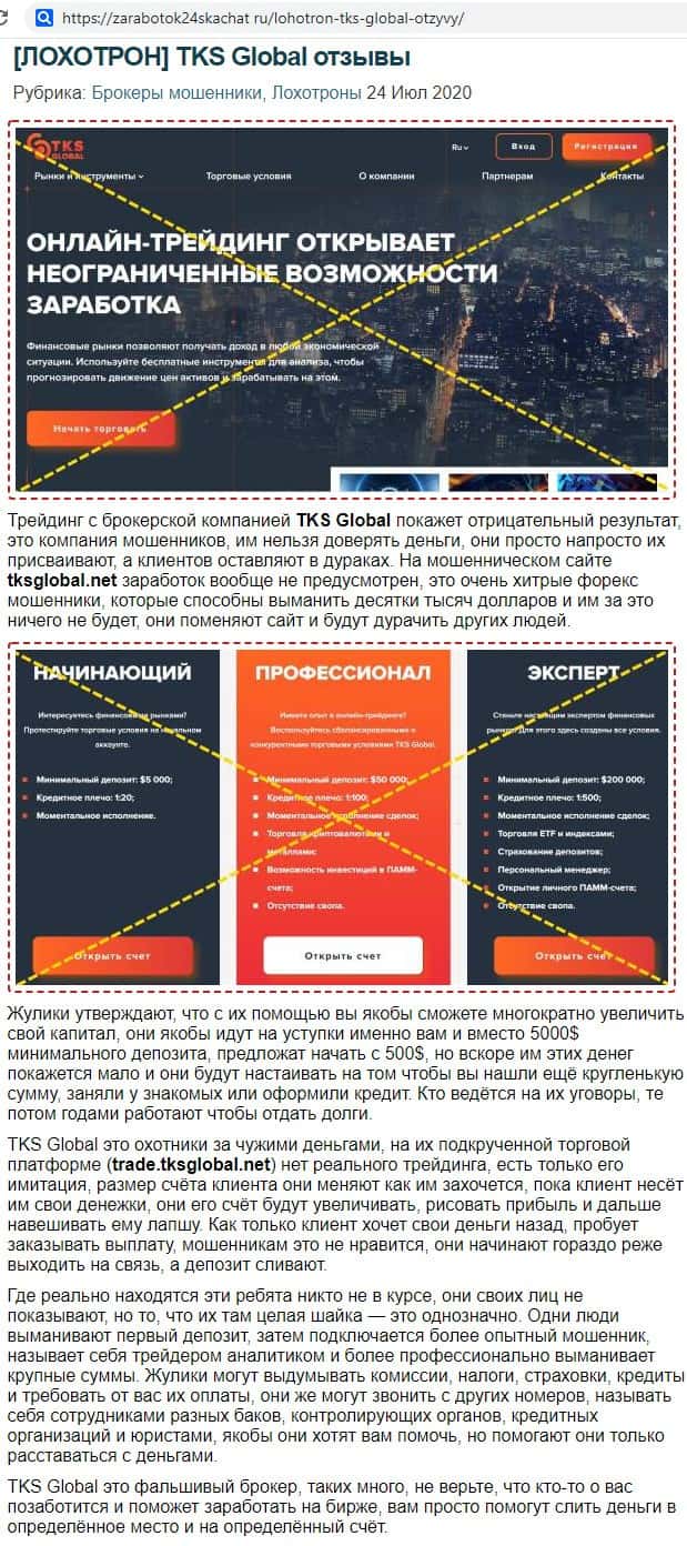 - Отзывы о мошеннической компании TKSGlobal Net, найденные на интернет-ресурсах