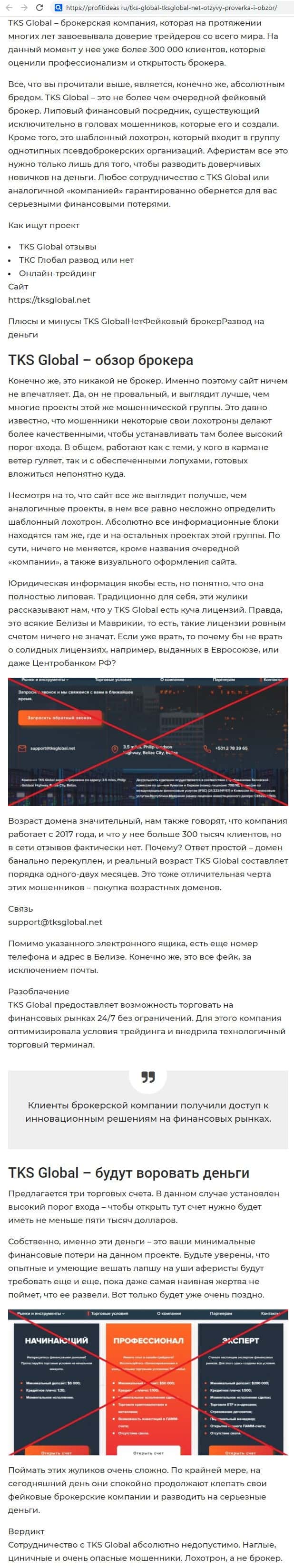 Аналитики с информационного ресурса profitideas ru считают, что TKS Global - это очередной фейковый брокер, и любое сотрудничество с ним обернется финансовыми потерями.