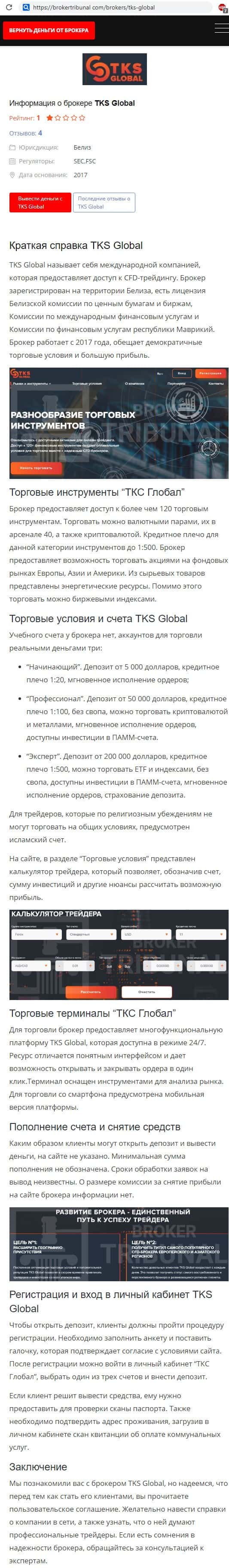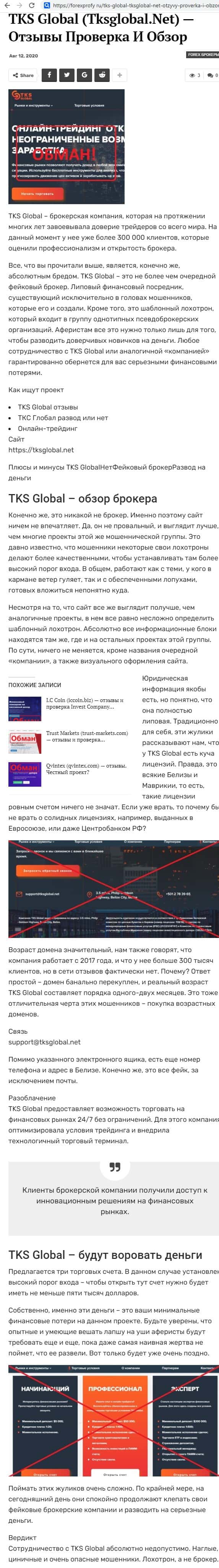 Аналитики информационного сайта forex-scam org сделали вывод о том, что брокерская компания TKS Global это лохотрон, за которым стоит группа украинских мошенников.