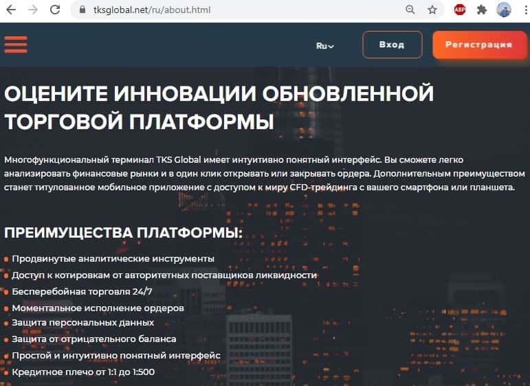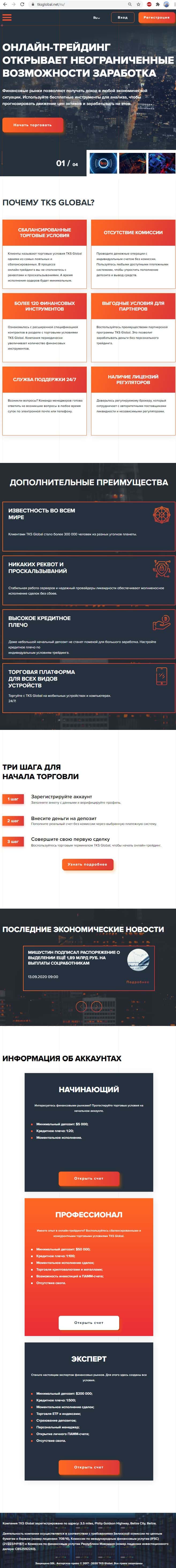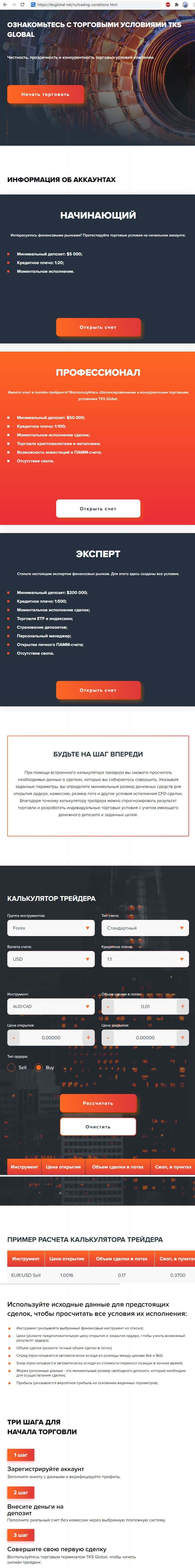 - Фасадная страница официального сайта псевдоброкера TKSGlobal Net