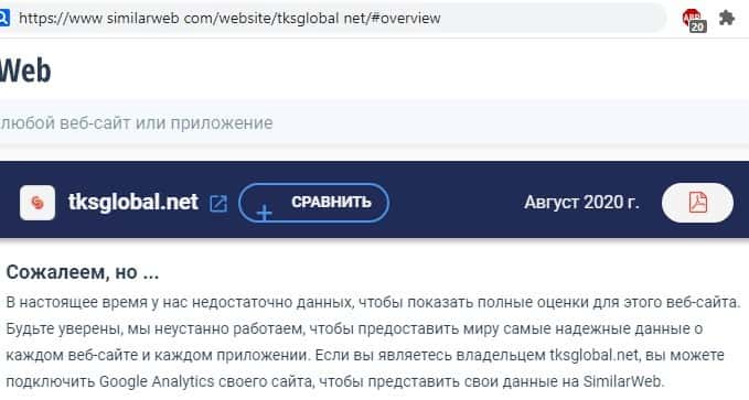 На аналитическом сервисе similarweb com, при проведении оценки трафика брокерской мошеннической компании TKSGlobal Net недостаточно данных для определенных выводов.