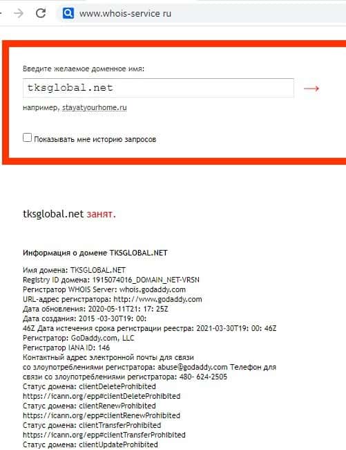 Аналитический сервис whois-service ru не находит данные о владельце домена мошеннической брокерской компании TKS Global, доверять этому веб-ресурсу нельзя.