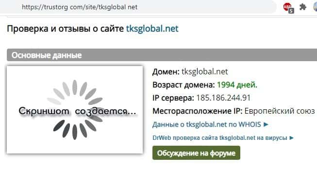 - Сведения об официальном интернет-ресурсе мошенников из TKSGlobal Net