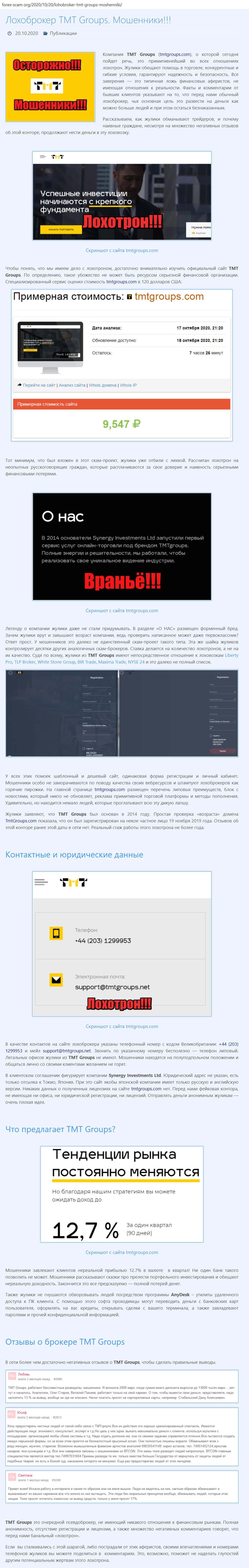 Далее на публикации предлагаем увидеть детальный обзор жульнической форекс-организации ТМТ Группс, материал был найден на интернет-площадке Форекс Скам Орг.