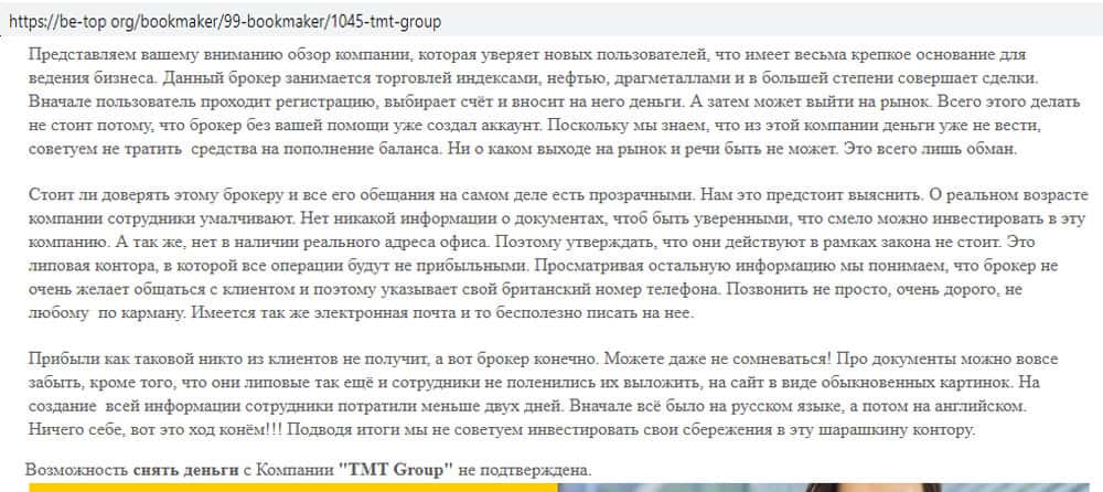 - Почему ресурсу жуликов ТМТ Группс не стоит доверять?
