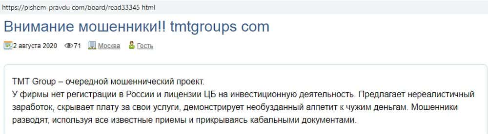 Обзоры лохотрона ТМТ Группс на разных ресурсах в сети