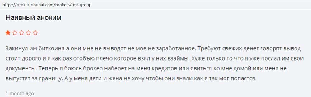 Некоторые пострадавшие уговаривают жуликов ТМТ Группс вывести хотя бы депозит, но те неумолимы. Они действуют нагло и беспринципно, так что ни в коем случае нельзя им платить.