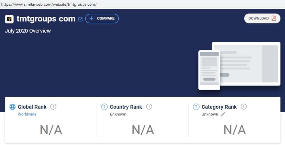 Ресурс симиларвеб не может определить источники трафика лохотрона ТМТ Группс - для этого элементарно недостаточно данных, ведь сайт мошенников посещает очень мало людей.