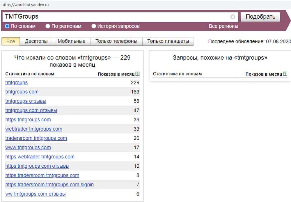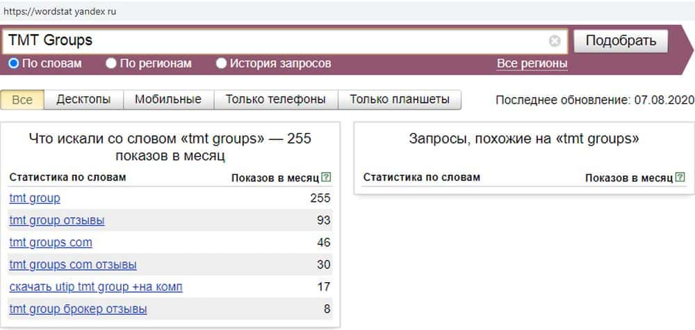 - Насколько популярны мошенники ТМТ Группс в поисковике Яндекс?