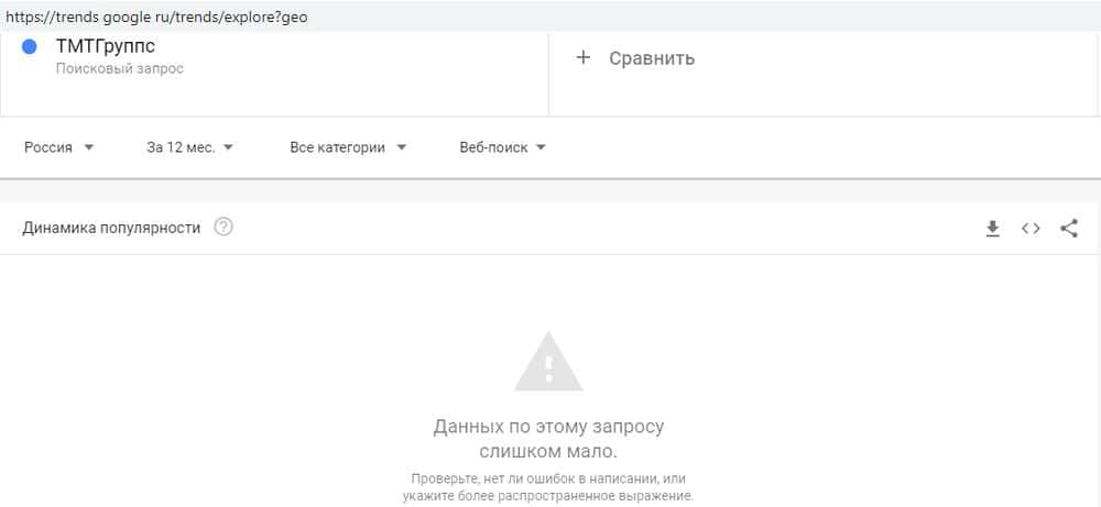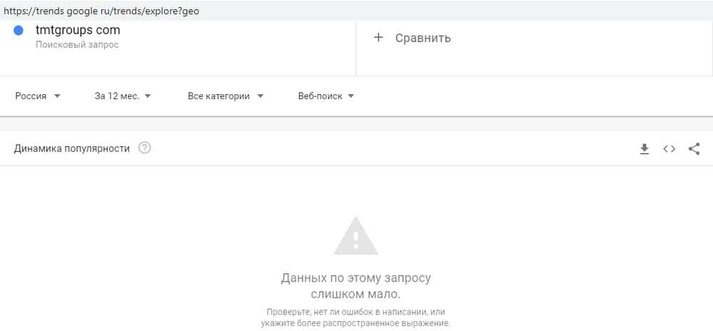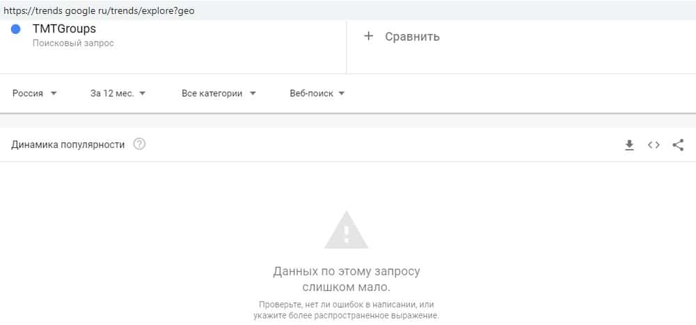 Не интересует пользователей поисковой системы Гугл и домен мошенников ТМТ Группс. По запросу "tmtgroups com" за прошедший год показов так мало, что они не вошли в статистику.